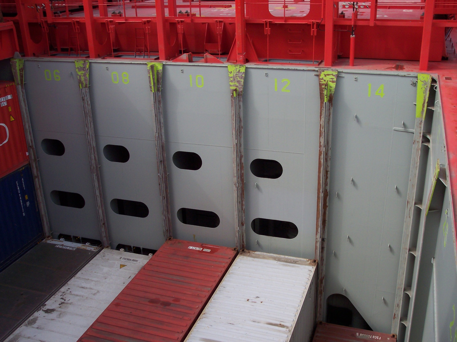 MacGregor deck and hold cell guides improve stack weights, container-carrying capacity and handling and the overall efficiency of a cargo handling system. They are an essential part of this system, which also includes hatch covers, lashing bridges, container stanchions, and loose and fixed container fittings on deck and in the holds.